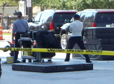 Casually encountering the Detroit Bomb Squad truck, Detroit police cars and various strategically placed black Cadillac SUVs, one might think they were transported to Detroit, only this was Cleveland on a beautiful September day watching the filming of the James Patterson novel turned movie, “I, Alex Cross”. On this day it could pass as the “windy” city with 30 MPH gusts, which would prove to be a hazard later. As with most movie shoots, there is the standard waiting many hours for the exciting parts to happen. In talking to nearby office workers on break, they tell of the excitement they witnessed the week before, with helicopters, snipers, and the actual actors, Tyler Perry and Matthew Fox, on set right outside their office building.