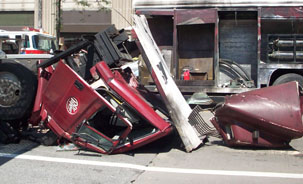 vans and taxis amongst rubble that resembled a typical road construction project. The cross walk was taped off to pedestrian traffic, so from our vantage point we HEARD the car flipping scene, but didn’t get to actually see it. What little we might have seen between obstructions was obscured by the fake smoke blown by giant fans. Then they announced it was their lunch break, so we took the opportunity to cross where it had previously been closed to scope out a better “after lunch” vantage point. We did see a few guys walking around in padded spandex pants containing sensors which obviously have some movie-making magic powers.